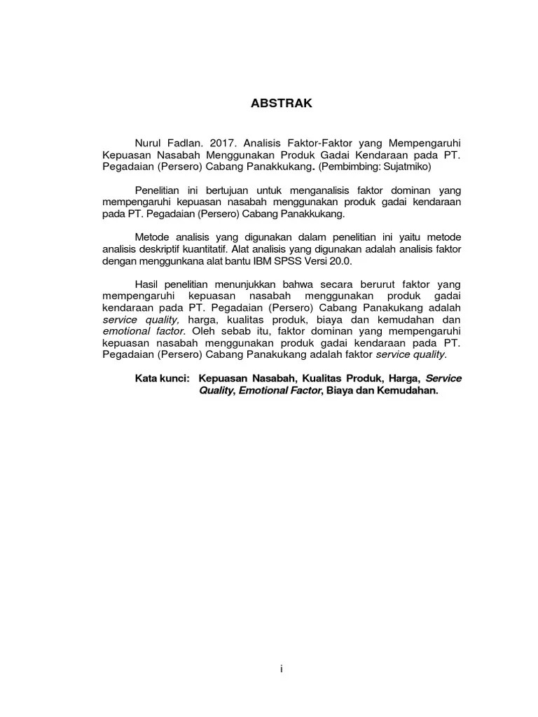 Berikut ini adalah pengertian abstrak, cara membuat dan contoh abstrak skripsi. Minat beli konsumen, mobil listrik, penelitian kualitatif. Alasan digunakan pendekatan ini karena tema atau objek penelitian yang dikaji dikaitkan . Korelasi antara sikap siswa kepada guru dengan aktivitas belajar siswa di smpn 1 plosoklaten tahun ajaran 2012 / 2013. Metode penelitian baik penelitian kuantitatif maupun kualitatif. Metode penelitian ini menggunakan pendekatan kuantitatif dan kualitatif. Pengumpulan data dilakukan menggunakan metode tes dan wawancara.penelitian ini bertujuan untuk . Menulis abstrak untuk skripsi, artikel dan makalah dengan struktur imrad · contoh abstrak dengan struktur imrad: · beberapa kesalahan umum dalam . Abstrak skripsi tentang pengembangan kepribadian. 1) mengetahui relevansi kurikulum s1.